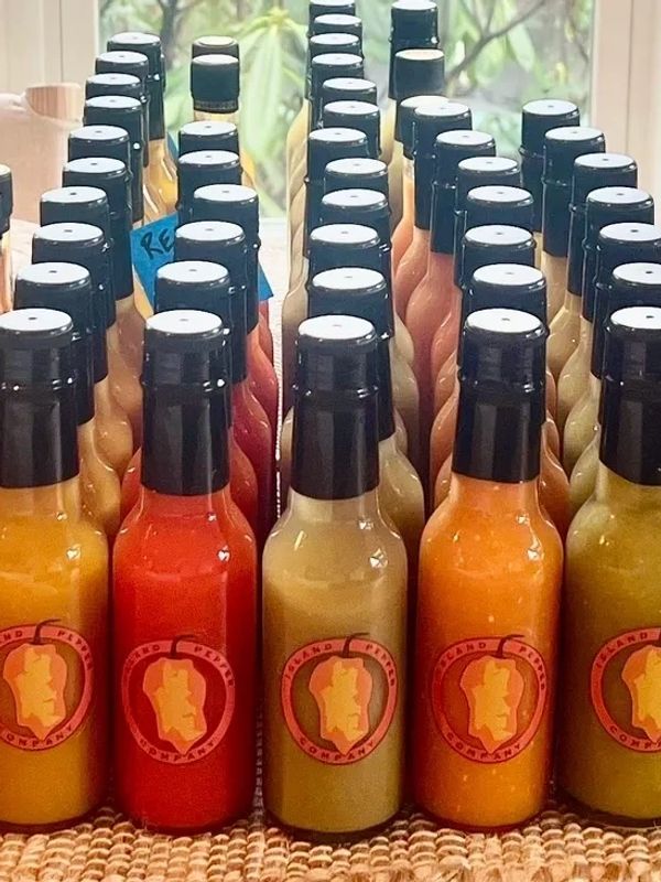 Island Pepper Company's roots in organic hot sauce can be traced to a backyard garden on the south end of beautiful Bainbridge Island, WA. With a few Serrano and jalapeño pepper plants in the summer of roughly 2014, we made enough hot sauce for a few bottles, and accidentally dumped some down the sink. The all-day sun favored our heat-loving hot pepper plants, but the short growing season of the Pacific Northwest didn't produce a significant yield of peppers. Over the past decade and a relocation to the north end of Bainbridge Island (with arguably a less sunny micro-climate), we've evolved our experimental organic growing techniques to include underground heating for the pepper plant roots and enclosures to temper the night chill and north winds off of Puget Sound. The result has been increased production and a wider variety of fruit and selection of organic hot sauces. We’ve also introduced different fermentation and smoking techniques and infused other flavors like garlic, onions, and citrus. We attempt to bring the most flavorful peppers in a variety of hot sauces, from sweet to tangy and mild to extra hot. None of these should burn your face off; we prefer hot sauces that let their presence be known but keep you coming back for more.